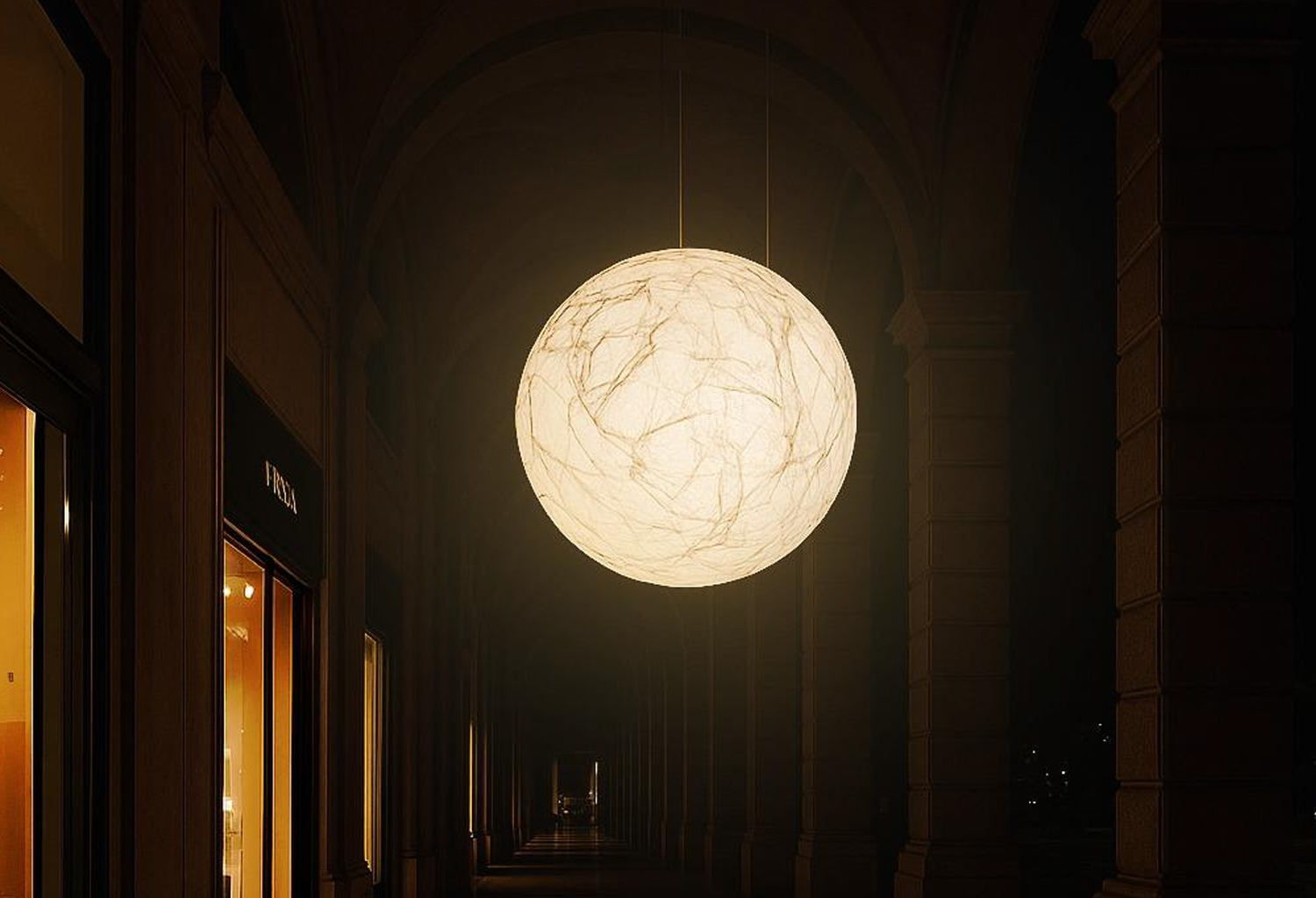 Nel cuore di Bologna, tra le volte eleganti del portico Zambeccari, Moon si presenta non come un semplice oggetto di design, ma come un’esperienza sospesa nel tempo. Qui, in occasione di BOLDESIGN, la sua luce diventa un invito a fermarsi, respirare e lasciarsi trasportare altrove, un equilibrio inaspettato tra la materia e l’immaginazione, tra la città e il cielo.